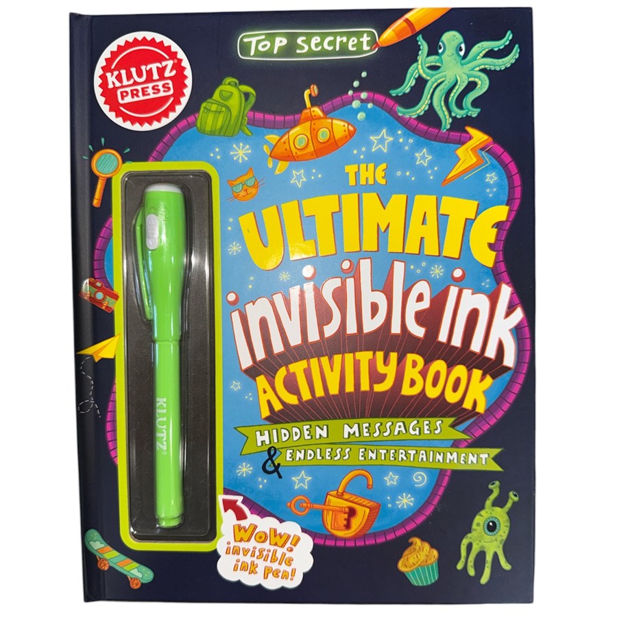 The Klutz Book of Invisible Boredom Busters is jam-packed with hidden messages, secret codes, games, jokes, and more activities to help bust even the most unbeatable boredom. You'll see both visible (and invisible) activities, fabulous facts, and mysterious messages throughout the 64 full-color pages and uncover invisible ink printed notes and images on every page. Included is one UV pen to write and reveal hidden messages in the book or on your own!