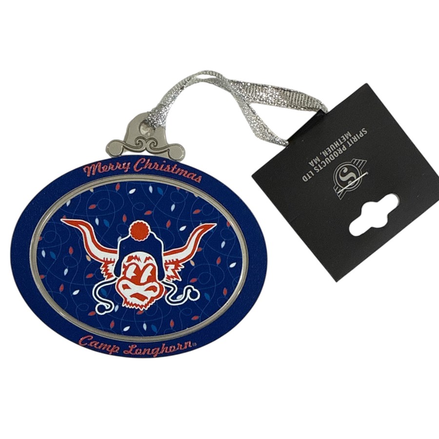 Brushed silver metal Christmas Ornament. Dimensional full-color graphic on frame and interior of ornament. Size: 3½”