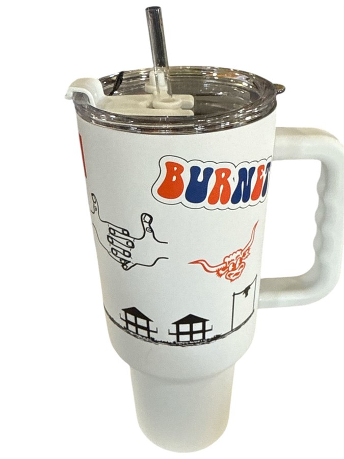 Stay hydrated in style! This 34 oz stainless steel quencher tumbler is built to keep your drinks cold for hours, thanks to its double-wall insulation and durable design. Featuring a built-in handle and a slim base that fits most cup holders, it's perfect for life on the go. Decorated with our most-loved icons, it’s a fun and functional way to show off your camp spirit wherever you roam.