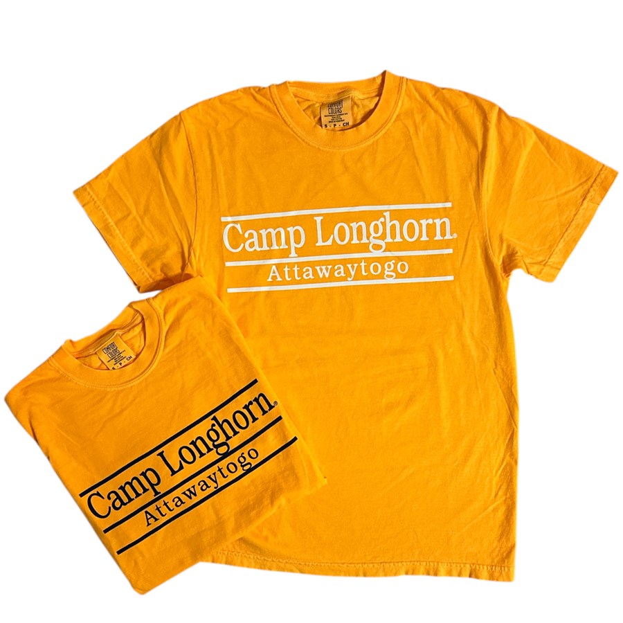 It's the classic shirt everyone at camp wants to purchase in ALL the colors. Available online in this bright orange!