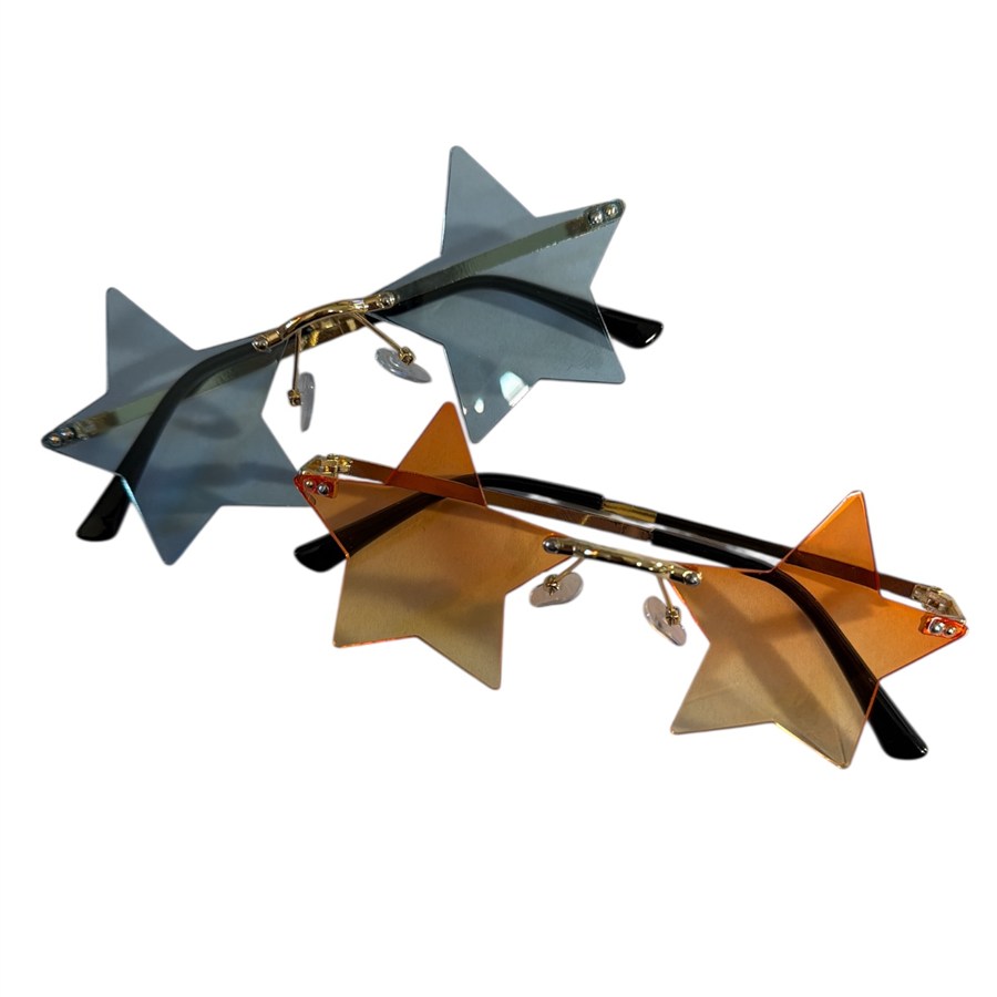 Perfect for Dance Night or to celebrate the 4th of July! These rimless star shaped sunglasses have a small Charlie on the lower outside point of the left lens.